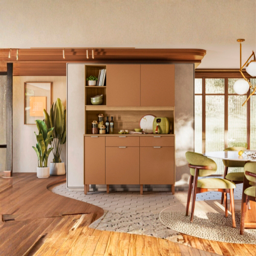 A Cozinha Flora une design leve, linhas atuais e uma paleta de cores acolhedora para transformar o dia a dia em algo mais prático e bonito. Seu visual traz equilíbrio e cria um ambiente funcional, organizado e cheio de personalidade.